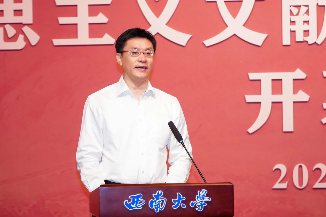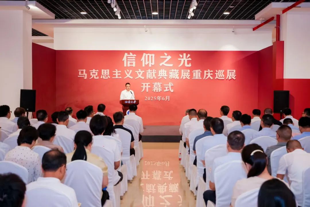 6月23日,在喜迎中国共产党成立104周年之际,“信仰之光——马克思主义文献典藏展”重庆巡展在西南大学博物馆启幕。此次展览由中共中央党史和文献研究院主办,中共中央党史和文献研究院信息资料馆、中共重庆市委宣传部、中共重庆市委党史研究室、重庆市教育委员会、西南大学、中央文献出版社承办,西南大学马克思主义学院、西南大学党委宣传部、重庆红岩革命历史博物馆·西南大学国家革命文物协同研究中心、西南大学博物馆执行。中央党史和文献研究院副院长孙东升,重庆市委常委、宣传部部长姜辉,西南大学党委书记张卫国出席开幕式并致辞,重庆高校师生代表和重庆党史部门代表参加会议。重庆市委党史研究室主任姚红主持开幕式。