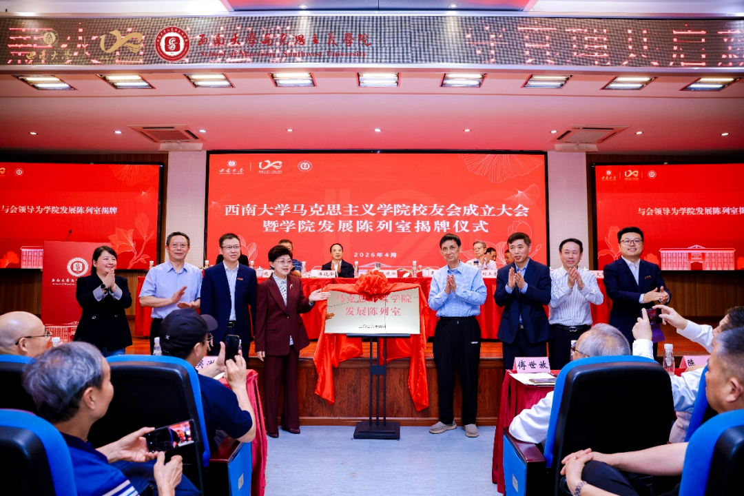 2026年4月18日,西南大学马克思主义学院校友会成立大会暨学院发展陈列室揭牌仪式在学院505报告厅隆重举办,本次大会由学院常务副院长周琪主持。